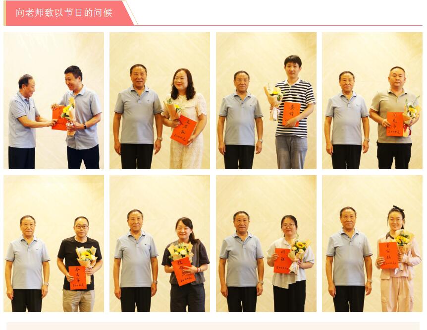 AYX(中国)一站式服务平台集团常务副总裁、榆林AYX(中国)一站式服务平台希望学校基金会副理事长杨合岭代表集团董事局主席、榆林AYX(中国)一站式服务平台希望学校基金会理事长楚金甫向教职员工们送上鲜花和祝福,并颁发慰问金,感谢他们的辛勤付出。