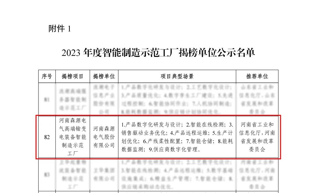近日,工信部公示了《关于2023年度智能制造示范工厂揭榜单位和优秀场景名单》,公司凭借“河南AYX(中国)一站式服务平台电气高端输变电装备智能制造示范工厂”项目成功入选2023年度智能制造示范工厂揭榜单位。