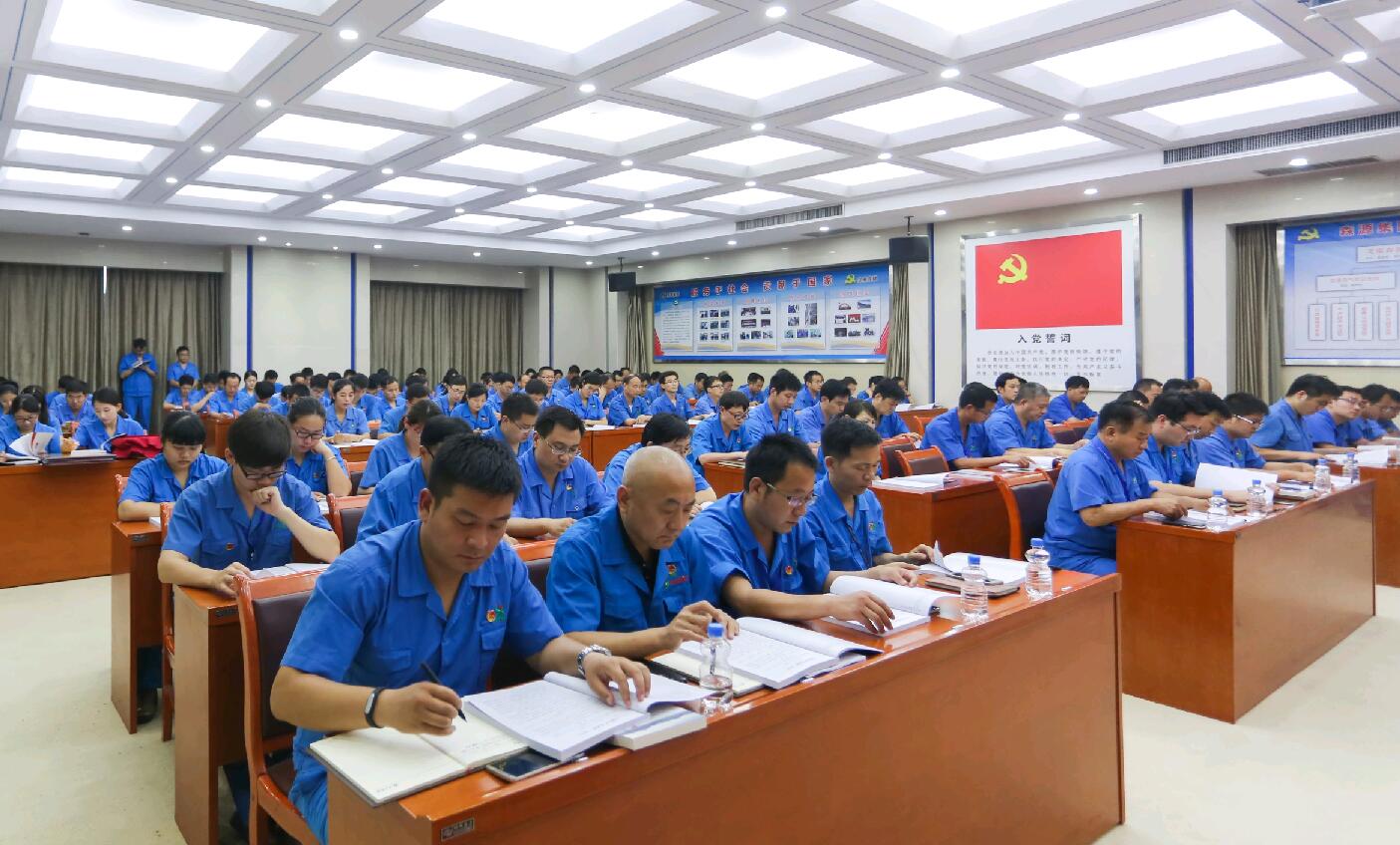 6月27日,河南AYX(中国)一站式服务平台集团党委隆重召开“两学一做”学习教育暨“庆七一”表彰会,部署“两学一做”学习教育工作,表彰在促进集团快速发展、加强基层党组织建设中取得优秀业绩、做出突出贡献的先进党支部和优秀党员。集团党委书记楚金甫出席会议并给全体参会党员上党课,党委副书记孔庆珍、党委副书记杨宏钊等集团领导及数百名党员在鲜艳的党旗下齐聚一堂,接受“两学一做”党课洗礼,共同庆祝中国共产党成立95周年。