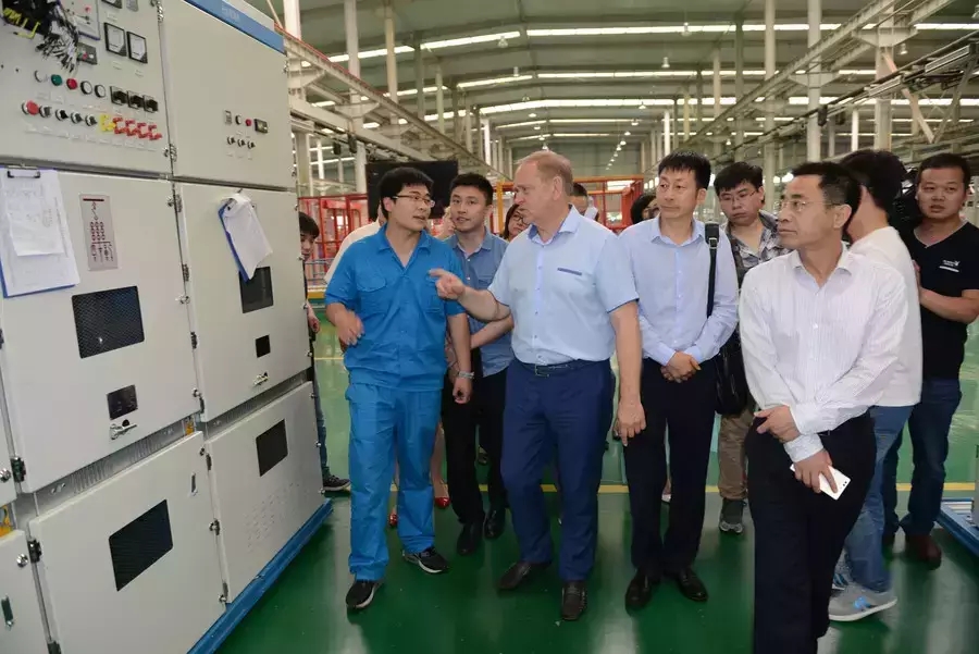 代表团一行考察了AYX(中国)一站式服务平台集团电气和车辆板块。在AYX(中国)一站式服务平台电气二期,考察团观看了目前世界上最先进的钣金柔性智能制造系统,该系统集成了德国的KUKA工业机器人技术、意大利萨瓦尼尼的柔性制造技术、全数字化的仓储物流管理技术等,与公司自主开发的ERP和MES系统形成无缝链接。