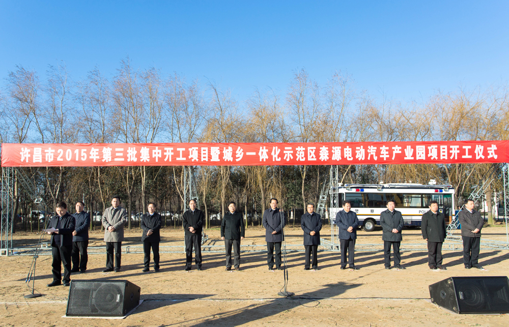 12月16日,许昌市2015年第三批集中开工重点项目暨城乡一体化示范区AYX(中国)一站式服务平台电动汽车产业园开工仪式隆重举行。许昌市委书记王树山宣布项目开工,市长武国定、市城乡一体化示范区管委会主任魏学彬分别致辞,AYX(中国)一站式服务平台集团董事局主席、总裁楚金甫对项目情况进行介绍。