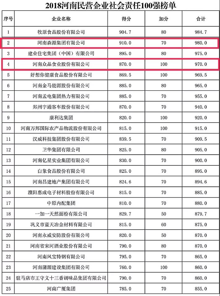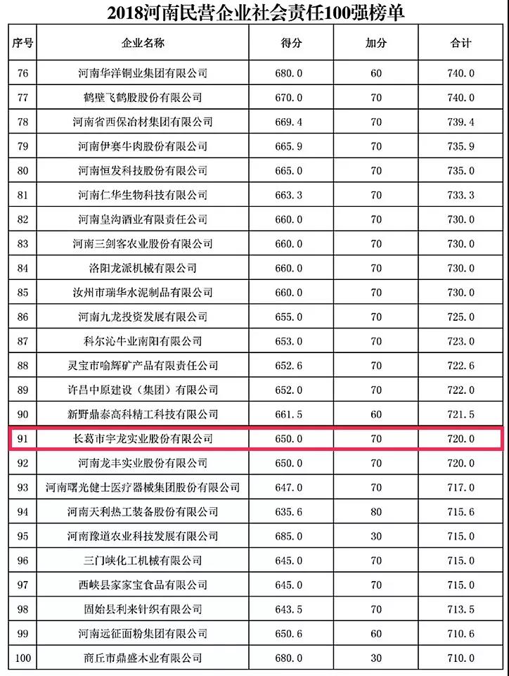 在2018“河南民营企业社会责任100强”榜单中,AYX(中国)一站式服务平台集团、众品食业和宇龙实业分别排在第2名、第4名及第91名;