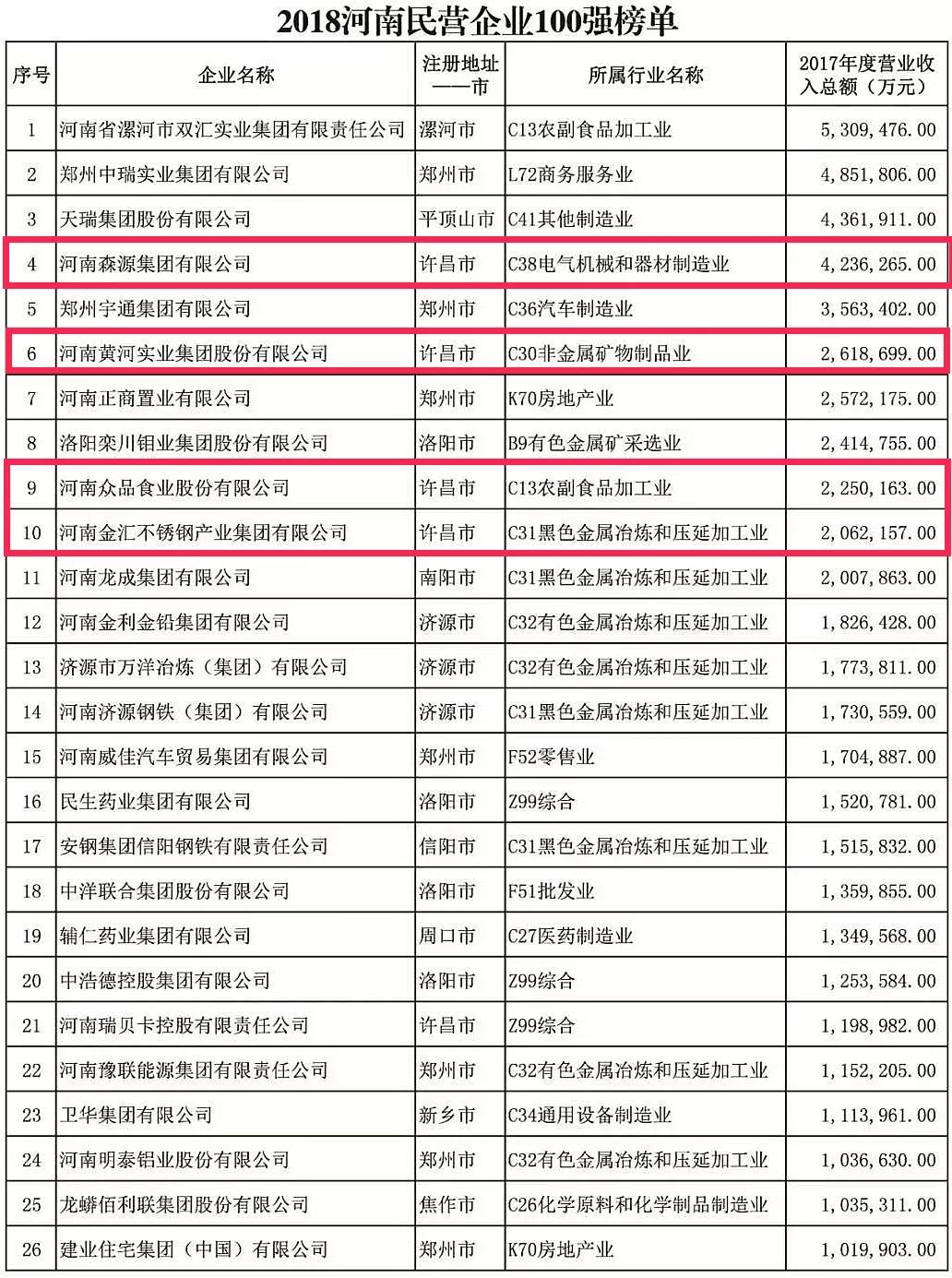 河南民企100强发布 长葛4家企业进入前10!
