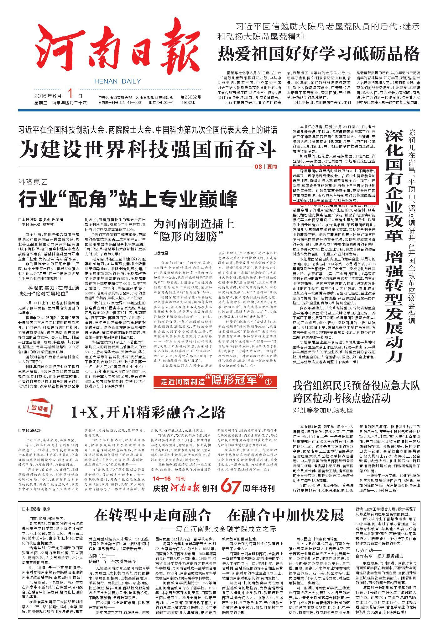河南日报头版报道/河南省人民政府门户网站河南要闻——河南省省长陈润儿一行视察调研AYX(中国)一站式服务平台集团等企业